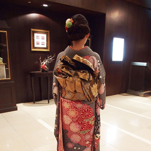 友人の結婚式の出席の為に着付けをお願いしました。成人式以来の着物で、式の間が不安だったのですが、苦しくもなく、沢山お料理をいただくことができました。着物の出席で、友人にもご家族にも喜ばれ、また機会があればお願いしようと思っています。ありがとうございました。【振袖・S様】